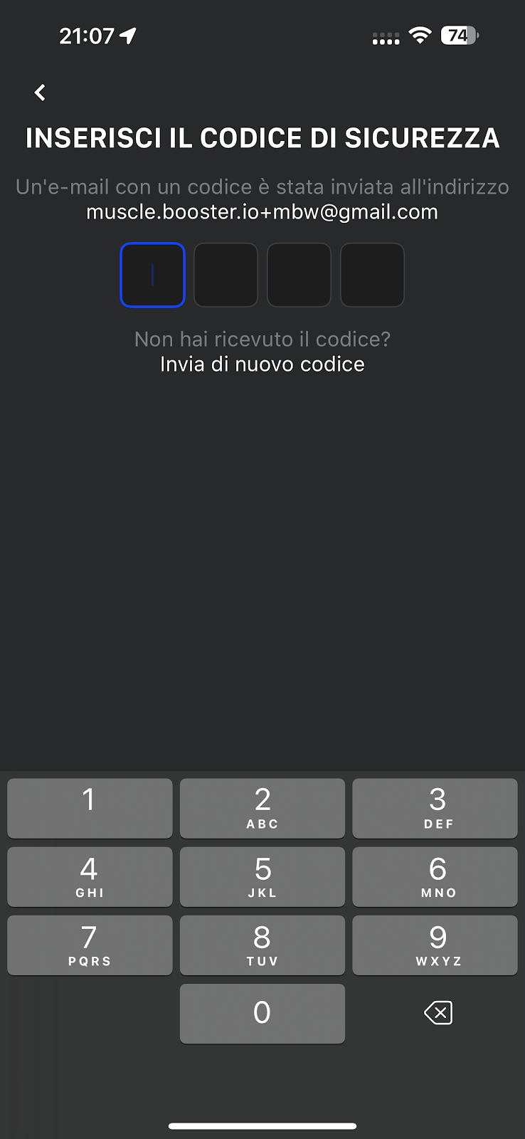 ! Se non hai ricevuto l’e-mail con il codice di sicurezza, controlla che l’indirizzo e-mail che hai inserito sia corretto.